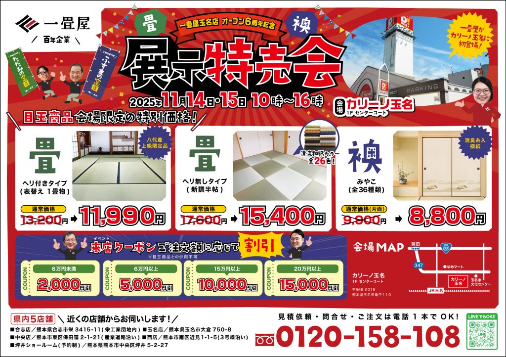 10月4日 5日はお得がいっぱい 一畳屋感謝祭!!