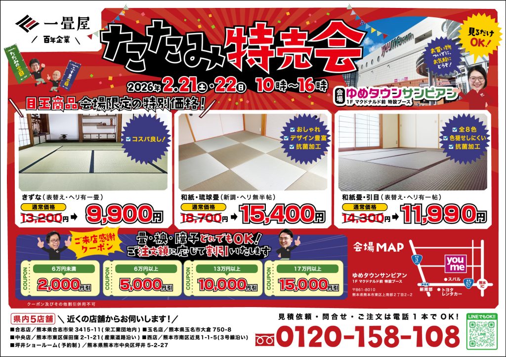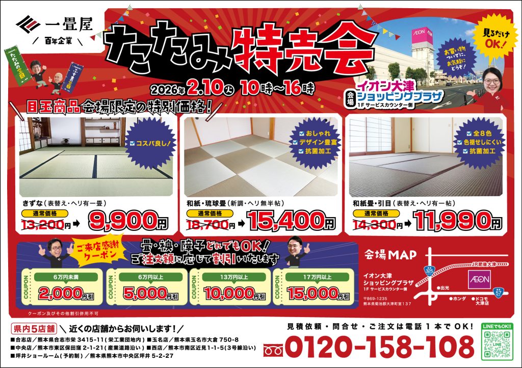 たたみ特売会◆2/10→イオン大津 ◆2/21.22→ゆめタウンサンピアン