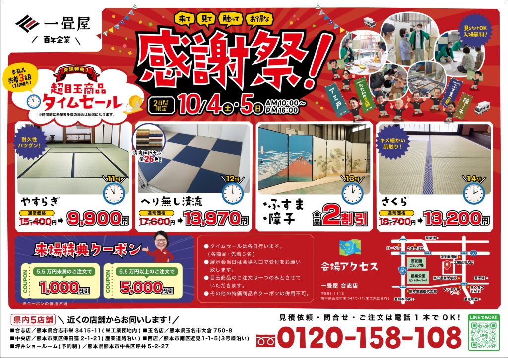 10月4日 5日はお得がいっぱい 一畳屋感謝祭!!