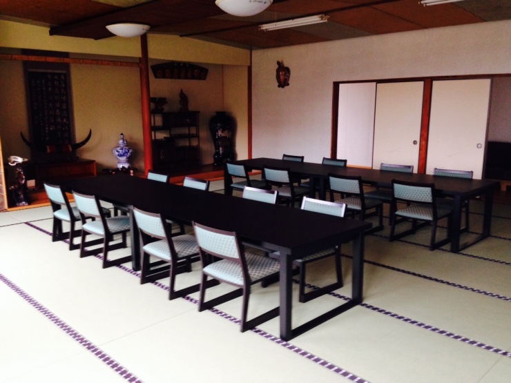 先日、菊池の城山荘様の大広間の畳替えをさせていただきました。