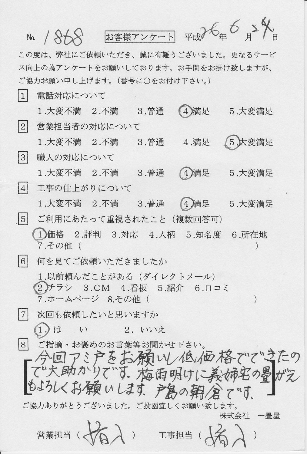 30年以上使われている畳で今回畳を土台から替えさせていただきました。